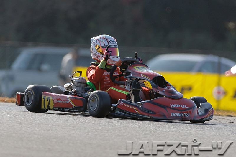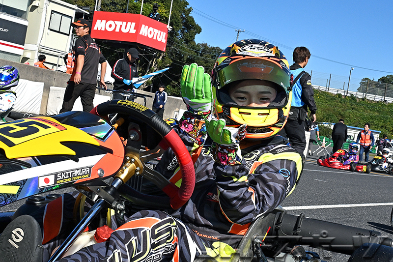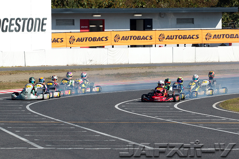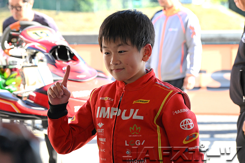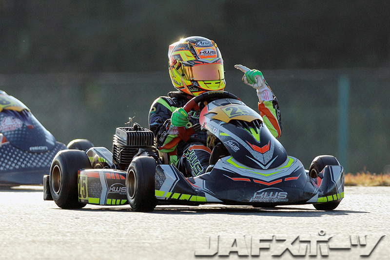 OK部門と同時開催のジュニアカート選手権 第9戦/第10戦(ラウンドシリーズ1)。10台が参加したジュニア部門では、前大会で開幕8連勝を達成していち早くチャンピオンを確定させた坂野太絃選手が、予告どおり海外参戦のため欠場し、今回は誰が勝っても初優勝という状況だ。