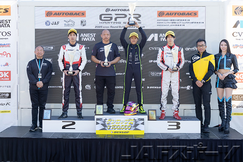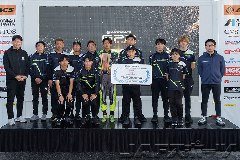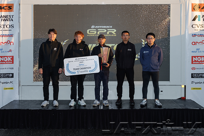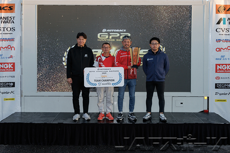 全てのクラスを対象に、チーム所属ドライバーの決勝ヒートにおける最大得点獲得者1名の得点がチーム得点として付与され、得点合計によりシリーズ順位が決定するGPR KARTING SERIES独自のチーム表彰。OK部門は中井悠斗選手、松井海翔選手、デグチャリョブ・ティモフェイ選手を擁するTEAM EMATYに、ジュニア部門は林選手、北中一季選手を擁するHIROTEX RACING with IMPULに、ジュニアカデット部門は阿部選手を擁するミツサダ PWG RACINGに、Shifterは伊藤選手を擁するAshにトロフィーと賞典が贈られた。