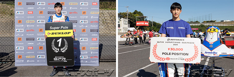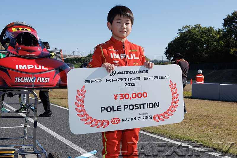 金子選手は続いて行われたスーパーポールでも47秒815でトップに。2番手には14歳の澤田龍征選手が続き、OK部門初年度のふたりが第9戦のグリッドのフロントローに並ぶことになった。ポイントリーダーの酒井仁選手は3番手、同じくチャンピオン候補の皆木選手は4番手、酒井龍太郎選手は6番手だ。
