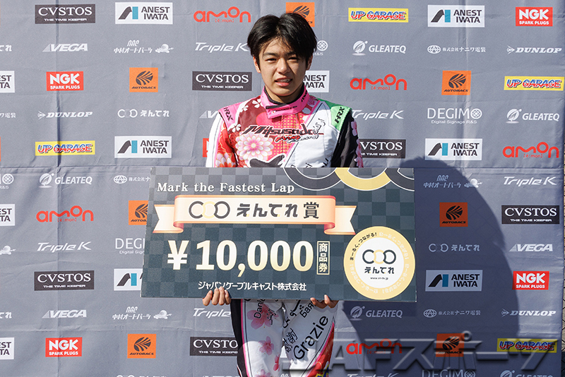 0.9秒強の差で2位となった三村選手は、「開幕戦でも澤田選手とバトルになったけれど、今日の澤田選手の走りはそのときと全然違っていて、これはタイヤを減らさないだろうなと感じていました。今日は彼の勝ちです」と後輩の成長を褒め称えた。