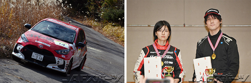 なお今回のラリー、男性ドライバーのクルーも含めた各クラス総合では、DE-1は三枝光博/村山朋香組のGRヤリス、DE-2は安井忠史/藤佳あやら組のトヨタ・スプリンタートレノが優勝。DE-5は女性ドライバートップの佐藤/富士本組が総合でも優勝を飾り、DE-6では松原周勢/市橋真由子組のヤリスが優勝。そしてチャレンジシリーズではスバル・WRXを駆った川瀬慈恩/吉田大樹組が14台によるバトルを制している。