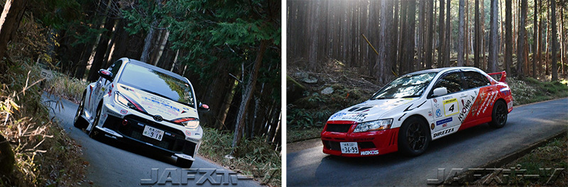 12月の開催ということで両ステージとも落葉が走行ラインや道の脇に敷かれ、最後までまったく気の抜けないステージとなった。なお昨年は前夜に雪が降って笠置山のSSは大幅に距離を短縮しての走行となったが、今年は晴天に恵まれ、全5SSともアイテナリーに沿った走行が無事に行われた。