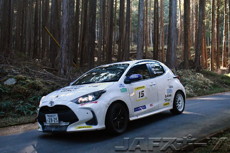 午後のセクション最初のSSとなったSS4笠置では2台ともに前走のSS2から大きくタイムを上げてくるが、伊藤/保井組が及川/山本組に9.7秒差をつけるクラスベストをマークして逆転、トップに立つ。