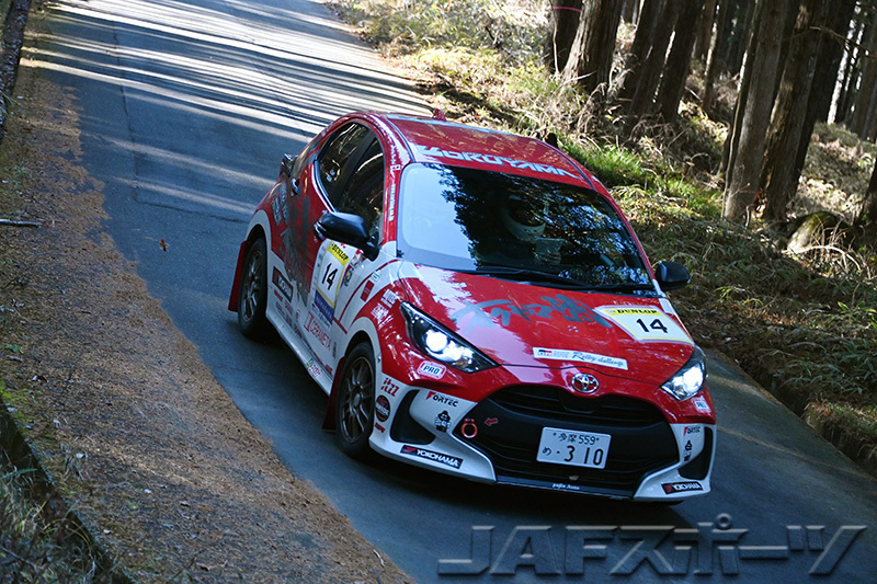 ラリー前半は冷えた路面に対応すべく発熱が良いウェット寄りのタイヤを履いたというHARU選手は、「笠置の下りで勇気を出してインカットした走りがタイムに繋がったと思います。タイヤ戦略も当たったと思いますが、午後に履いたドライタイヤを発熱させ切れずにSS4でベストを譲ってしまったのは今後の課題ですね。飯地は後半ゼッケンということもあって、走る度に路面が良くなっていったので助けられました」とラリーを振り返った。