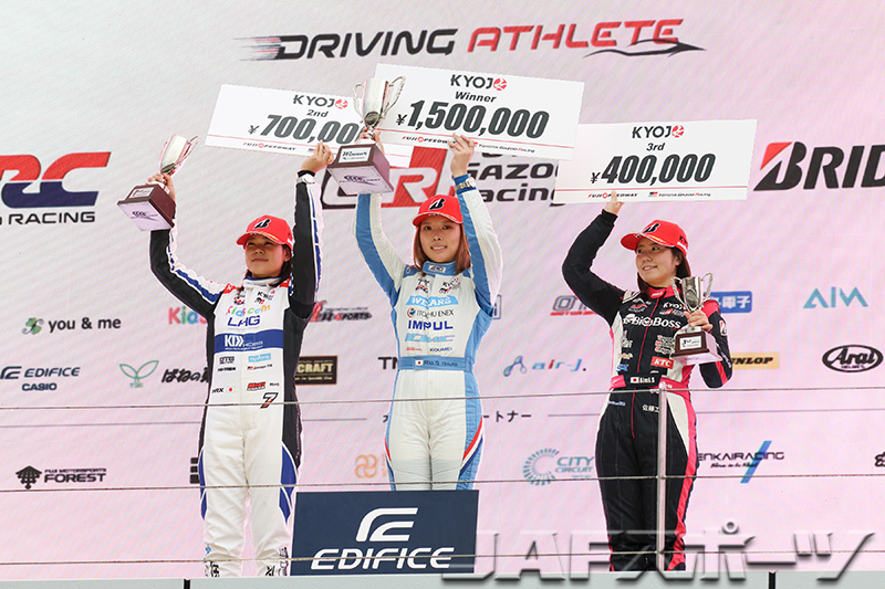 先頭では下野選手がトップチェッカーを受けて今季7勝目を飾り、第3戦のKYOJO Sprintから続く連勝記録を更新。2位に翁長実希選手(Kids com KDDP KC-MG01)、3位に斎藤選手が続いた。8位でレースを終えた山本選手はペナルティを受けた岩岡万梨恵選手(FUKUDA racing KC-MG01)に代わって7位に繰り上がり、今季初の入賞を果たした。