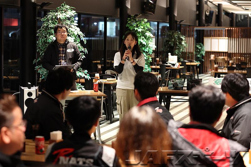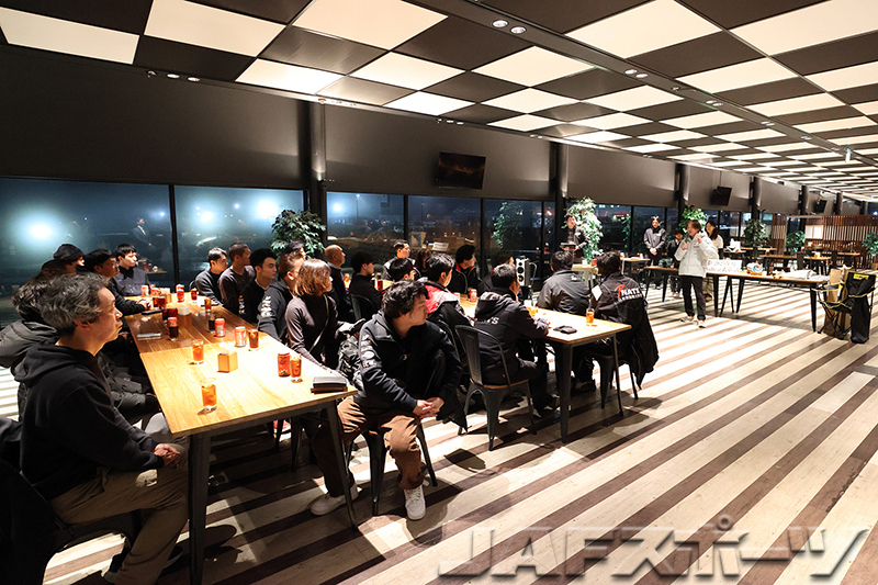 じゃんけん大会が盛況に終わると、いよいよ中締め。ファーストガレージの中村真悟代表取締役社長が「皆さん今年もお疲れ様でした。福永会長もおしゃっていたとおり、更なる盛りあげに私たちも尽力していきたいと思いますので、みなさん2026年もよろしくお願いします」と挨拶をし、シーズンを締め括った。