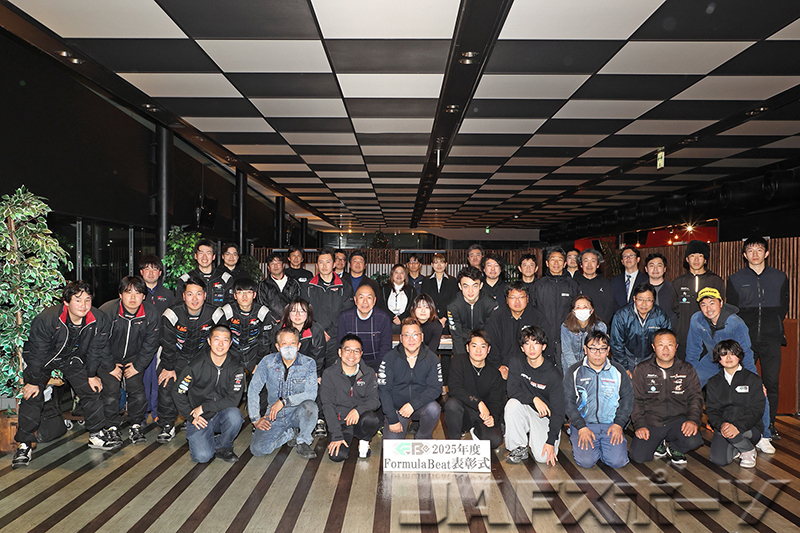 2月に鈴鹿サーキットで幕を開けた2025年JAF Formula Beat地方選手権は2025シーズンも国内7つのJAF公認サーキットで全15戦が開催され、毎戦アツいバトルが繰り広げられた。12月20・21日に富士スピードウェイで開催された第14戦と最終第15戦の余韻も束の間、2025シーズンに優秀な成績を収めたドライバー・チームを讃える表彰式が、富士Aパドック内に建つ公式レストランCRANE Gardenで行われた。