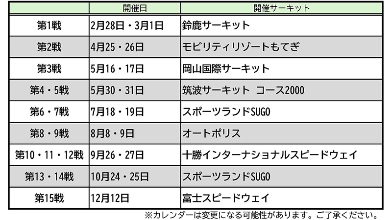 式典の翌日、22日にはF-Beのホームページにて2026シーズンの暫定カレンダーが発表。2025シーズンと同様、2月末に鈴鹿で開幕して新たに第4・5戦の舞台となる筑波サーキット コース2000が加わった、全9大会15戦で競われる予定であることが明かされた。2026シーズンは更に白熱したシリーズになることを期待したい。