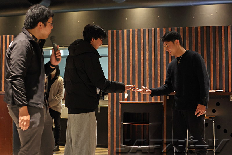 各賞の表彰が終わり、会場も賑やかになってきたところで、協賛企業から提供された豪華賞品をめぐるじゃんけん大会が行われた。今回は参加人数が多いことからカーリー氏のアイデアで、ルーレットで誕生月を指定し、当たった誕生月の出席者の中でじゃんけんをし、勝った人から賞品を獲得していくユニークな方法で実施。12月生まれが当たると、この日が誕生日のハンマー選手が登場。出席者たちから温かい拍手で祝福を受けた。その後もじゃんけん大会は続き、一番最後まで残ったのはグランドチャンピオン酒井選手。苦笑いしながらも用意された賞品を両手いっぱいに持ち帰った。