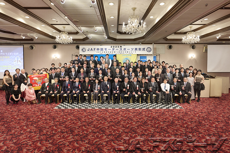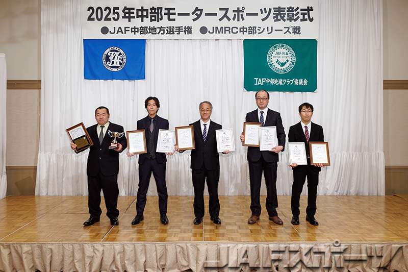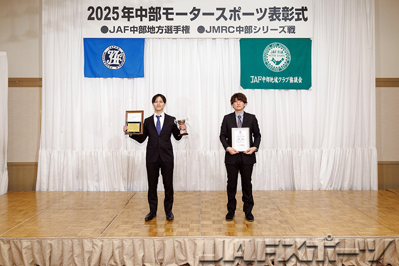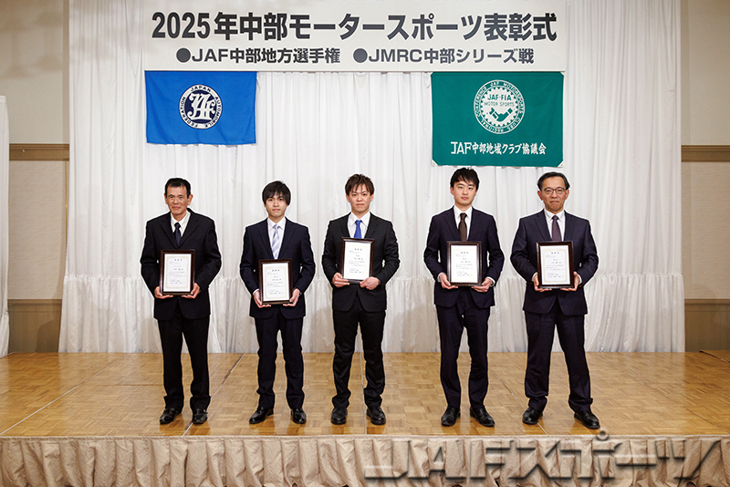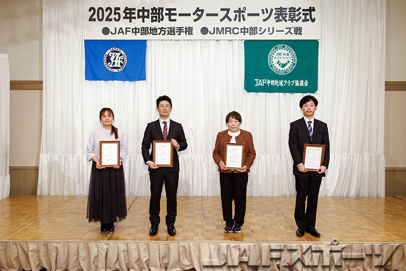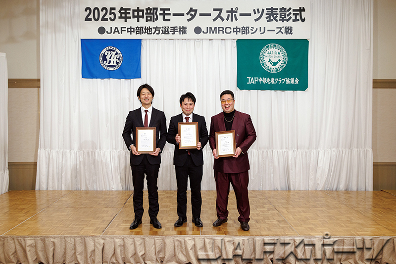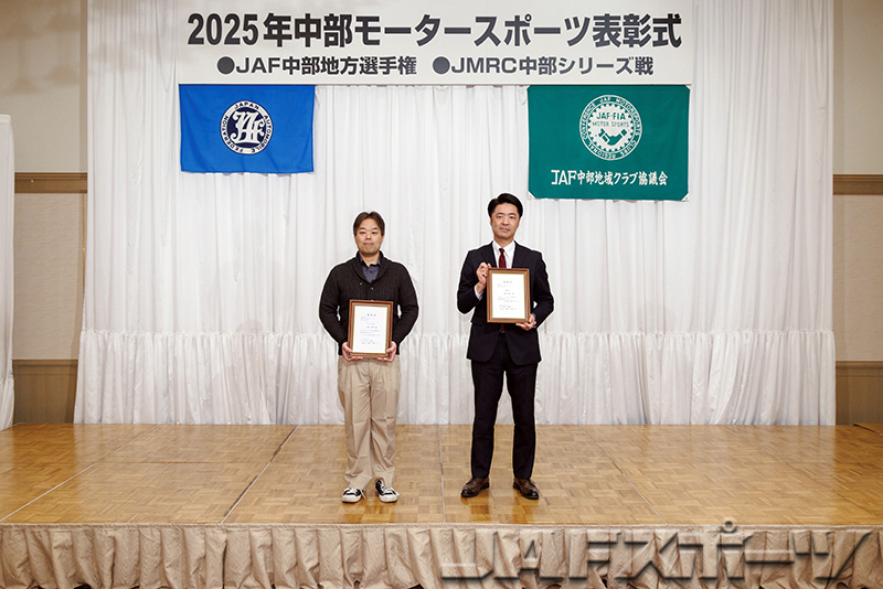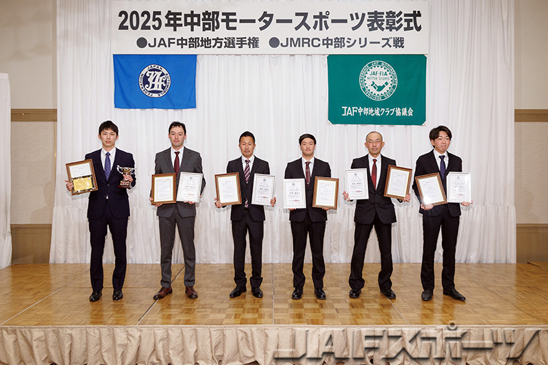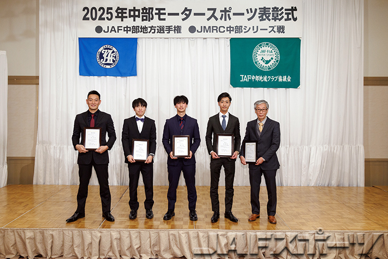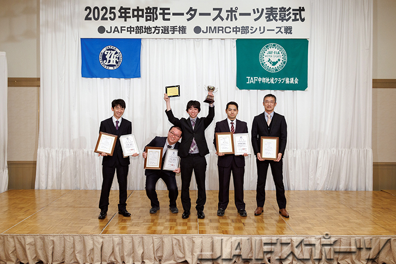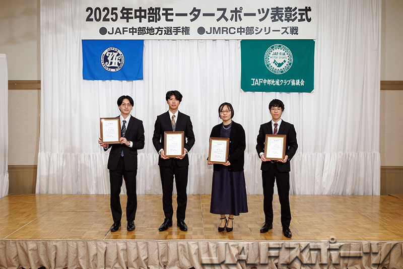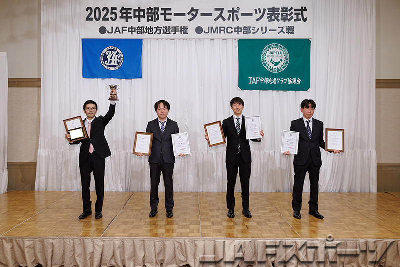 2025年のJAF中部地方選手権およびJMRC中部シリーズ戦で優秀な成績を残した選手を表彰する、中部モータースポーツ表彰式が1月31日に三重県鈴鹿市のホテルで開催。式典会場は例年同様に華やかな雰囲気に包まれ、厳かに表彰が執り行われた。