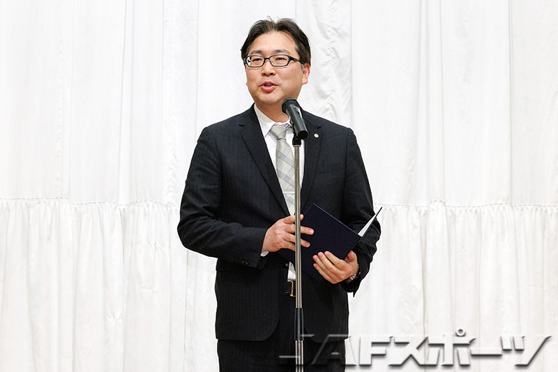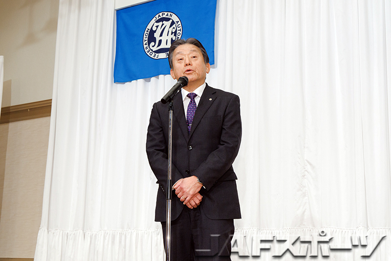 主催者を代表してJAF中部本部の稗田事務局長が「1年間の競技を終えられました選手の皆さま、本日は誠におめでとうございます。活動を1年間支えた各クラブ、競技会オーガナイザー、ならびに多くの関係各所の皆さまには心より厚く御礼を申し上げます」と冒頭で挨拶。また、#thanksofficialキャンペーンの動画がスクリーンに映し出され、オフィシャルや審判員に向けて謝辞を述べた。