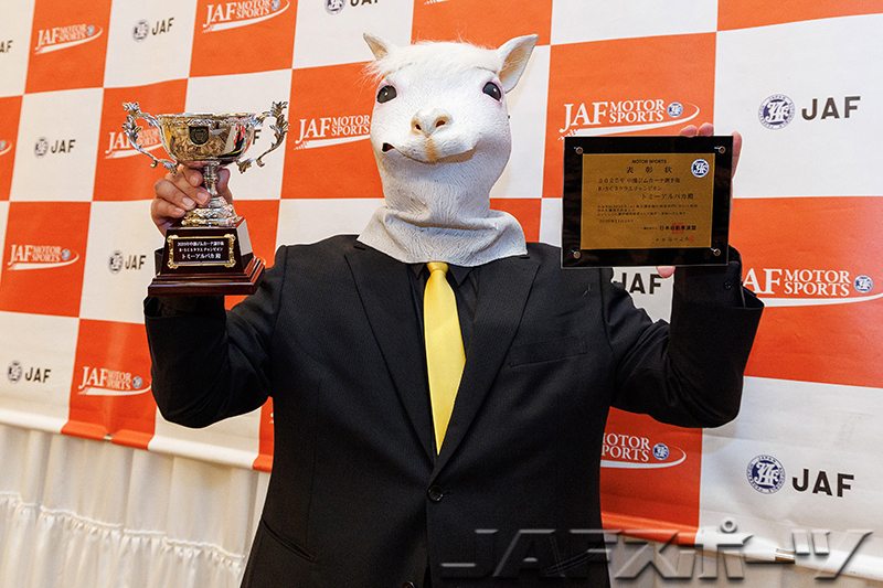 トミーアルパカ選手はその名の通り、アルパカのマスクを被って表彰を受ける姿が中部ジムカーナ名物となっている。「 東海シリーズに出たのが約5年前で、次の年にフルで出たらチャンピオンが獲れて、地区戦に上がって『チャンピオン獲るぞ!』と意気込んだけど3年かかっちゃって……。初年度からイケる想定だったんですけどね」とついに王座に就いた。「昨年はエンジンのオーバーホールが間に合わず、人のクルマでダブルエントリーして、気持ち的には下がっているところからスタートしたんですけど、ワン・ツーで2位獲れて『イケるんじゃないか?』ってそのままの流れでいけました」と戴冠の要因を分析する。「第6戦を前にLSDを換えてたものの、1本目を走って全然タイム出なくて……。1秒以上離されていたんですけど、スイッチ入って思いっきり走ったら0.002秒差で勝ちました。あれは会心の一本でした」と振り返る。「今年は全日本全戦に出ようと考えています。入賞常連は狙いたいですね」と新たな挑戦に意気込んでいた。