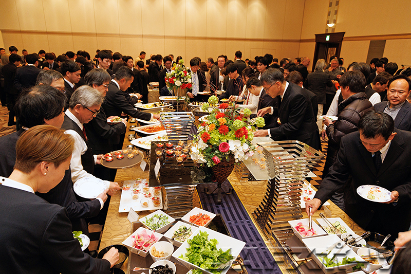 つつがなく進行した表彰式の後は記念の集合写真撮影を行い、出席者は一旦会場の外に退出。そして18時から第2部・懇親パーティーがスタートする。JMRC中部の福田淳三副運営委員長がパーティーの挨拶を務め、「来年に向けて楽しいひと晩となりますように皆さん和気藹々とやっていきましょう」と述べ、会場は一気に穏やかな雰囲気に包まれた。
