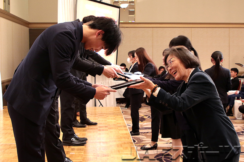 表彰式の式典会場は、ホテルレストラン THE DININGの2階にあるパンケットホールのハナミズキ。開場前から表彰対象者や関係者がロビーを埋め尽くす賑わいを見せ、16時から開幕となった。司会進行は昨年と同じくフリーアナウンサーの重田あさみ氏。レーシングカート等でお馴染みの朗らかな声で会場内を明るく盛り上げていた。