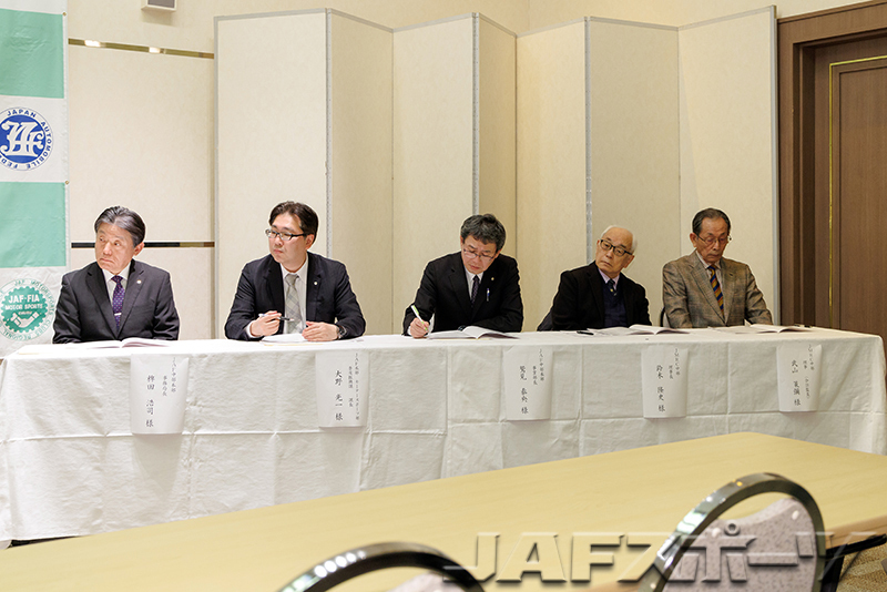 第45回を数えるクラブ・団体代表者会議ではJMRC中部運営委員会の嶽下宗男運営委員長が冒頭に挨拶し、第1号議案から第9号議案まで各運営委員からさまざまな報告がなされた。この会議にはJAF中部本部の稗田浩司事務局長、JAF本部モータースポーツ部の大野光一普及振興課長、JAF中部本部の鷲見泰央事業部長、JMRC中部の鈴木隆史理事長、JMRC中部の武山策彌理事が来賓として臨席している。