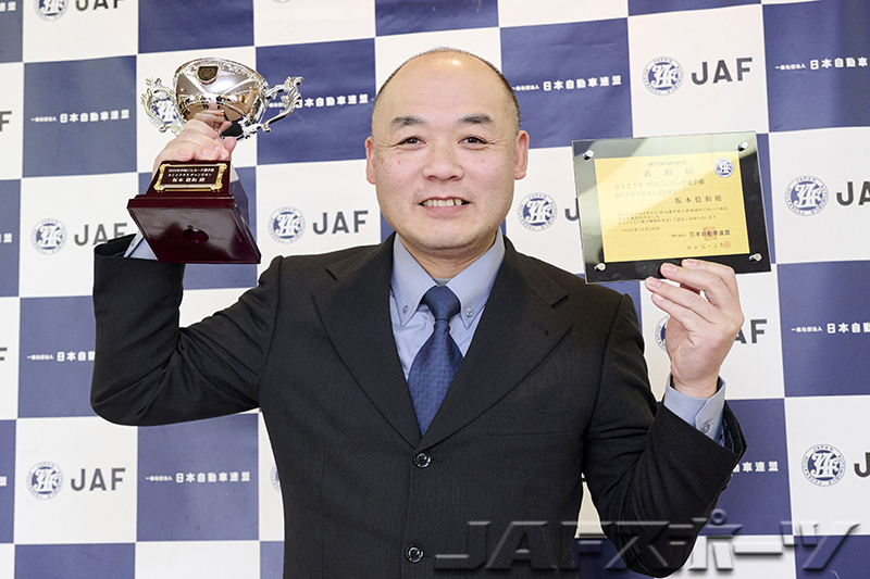 「長い間ジムカーナをやっていますけど、初めてのチャンピオンなんで純粋にうれしいです」と落ち着いて語る坂本選手。以前のN3クラス参戦のころはシリーズ全戦を追いかけていたこともあったそうが、クラス替えを機に生活を圧迫するような参戦は止め、気が向いたラウンドだけ出るというスタイルに。2025年はこれまでの年6戦から5戦になったことで、メカニックの後押しもあって久々にシリーズを追った。ミスなく乗ればチャンピオンが獲れる確信はあったという坂本選手は、2025年で印象に残るラウンドとして最終戦を挙げ、「1本目、結構気合いを入れて行ったんですけど、クルマがトラブっちゃって……。藤井選手に1本目をやられて、いまいち乗り切れずに2番手でした。自分が負けたら藤井選手がチャンピオンという状況でしたけど、2本目で何とか取り返せて良かったです」と、のしかかるプレッシャーに打ち勝ちタイトルを獲得。「今年に関しては走りたいラウンドだけ走ってっていう形にするかもしれません」と、今シーズンはあくまで平常運転の構えだ。