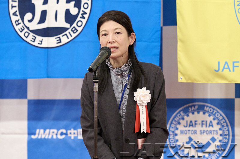 JMRC中国オリジナルの2025シーズンを振り返るダイジェスト映像がオープニングで流され、いよいよ表彰式がスタート。主催者挨拶はJAF本部モータースポーツ部の村田部長で「2025年の競技を終えまして、本日表彰されます選手の皆さまにおかれましては、そのご活躍に対しまして心より敬意を表するとともに、日ごろより当連盟のモータースポーツ振興、統轄業務にご理解ご協力を賜っております皆さまに対しまして厚く御礼申し上げます」と言葉を述べた。