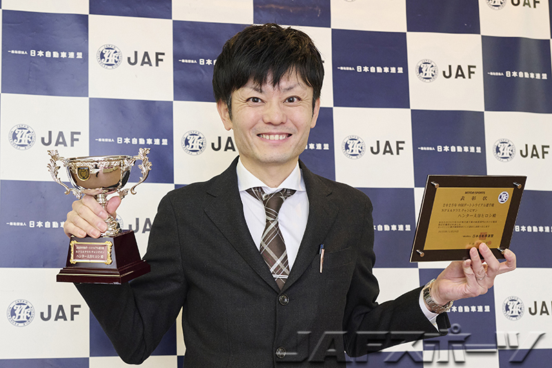 “ハンター大谷ヒロシ”というライセンス表記名が目を引く大谷選手。「理由は覚えていないんですけど、学生のころからこんなあだ名がついていて、何年か前にライセンスネームにしたら? みたいな話になってつけました」と由来を説明する。全日本選手権でもその名を見かける機会が増え、ベテラン選手に思われる中、「チャンピオン初めてなの? って言われました。やっと一番高いところに立てて素直にうれしいですね」と、はにかんだ。「2ペダルのクルマに乗りなれてきたことと、3~4回バネを替えて足回りが良くなったところが勝因です」と最終戦では勝ってチャンピオンを決め、クルマから降りたときは思わずガッツポーズで喜びをあらわにした。2026年は東京に転勤が決まったことで、モータースポーツ活動はまだ白紙状態。「仕事の程度が把握できていないのですが、このまま何もしないわけにはいかないので、落ち着いたら関東地区の参戦も視野に入れて活動していこうと思っています」ということなので、新天地での活躍も期待したい。