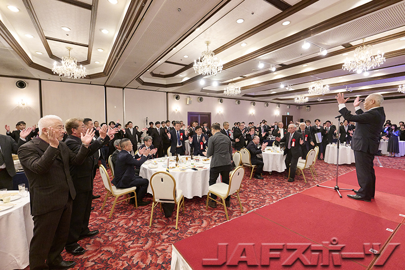ビンゴ大会など楽しい催しもあり、約2時間の懇親会も閉会となる。最後はJAF本部モータースポーツ部の箕輪担当部長がモータースポーツマイページへのログインと、会員有効期限の確認についてのお願いの後、「それでは皆さまのご健勝を祈念いたしましてご挨拶とさせていただきます」と結びの言葉でお開きとなった。