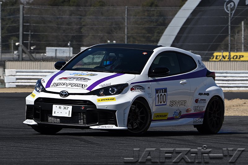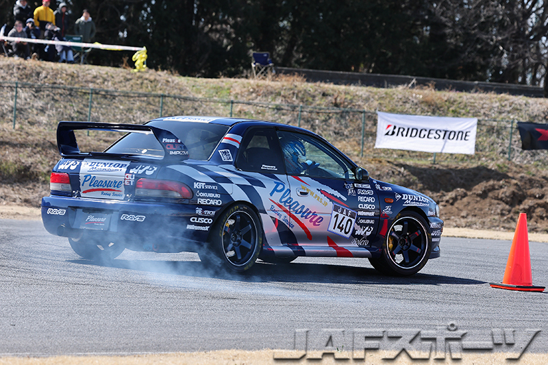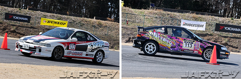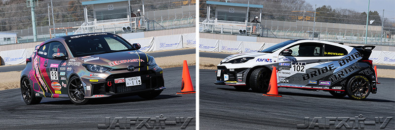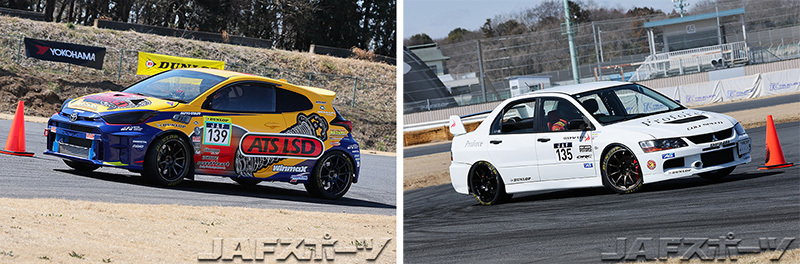「路面温度が上がった第2ヒートは、前後バランスが狂っちゃってタイムアップできなかったのが敗因ですね。全体的にクルマがオーバーステアで、セッティングをミスった感じです」という福田選手が2位、「2か所の360度ターンで失敗してしまいました。第2ヒートのタイヤのフィーリングが良かったので、ドライバーが調子に乗ってしまいましたね」と反省する小林選手が3位に入賞した。