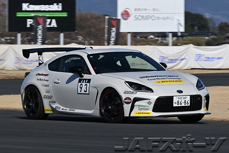2400㏄のエンジンを搭載するトヨタ・GR86とスバル・BRZの戦いとなったPN4クラス。誰が主導権を握るのか注目が集まる中、「昨年の10月に発売された最新のGR86に乗り換えました」という野島孝宏選手が、第1ヒートではクラス唯一となる1分15秒台のタイムでトップに立つ。