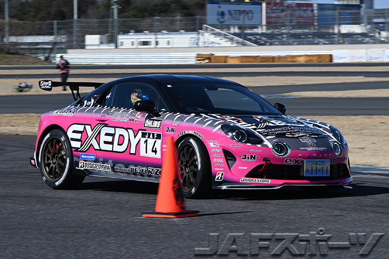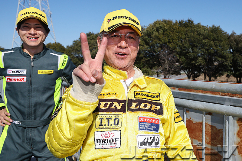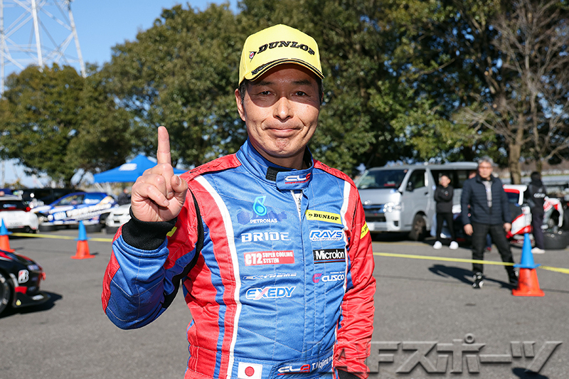 トップの座を死守していた大橋選手だったが、クラス最終走者の前年度チャンピオン山野哲也選手(アルピーヌ・A110R)が、「今回から新しい銘柄のタイヤを装着しているんですが、第2ヒートはタイヤの特性をもう少し理解しようと思って、タイヤの横方向を使う攻めた走りでアタックしました」とコーナリングスピードを稼ぐ走りでベストタイムを更新。第2ヒートの逆転劇で開幕戦優勝を果たした。