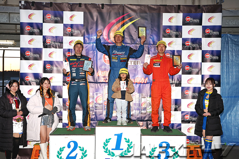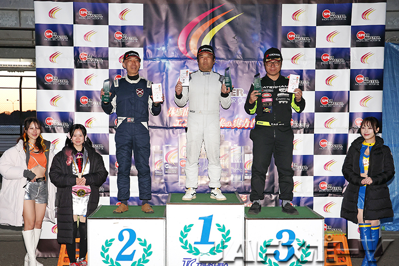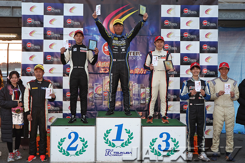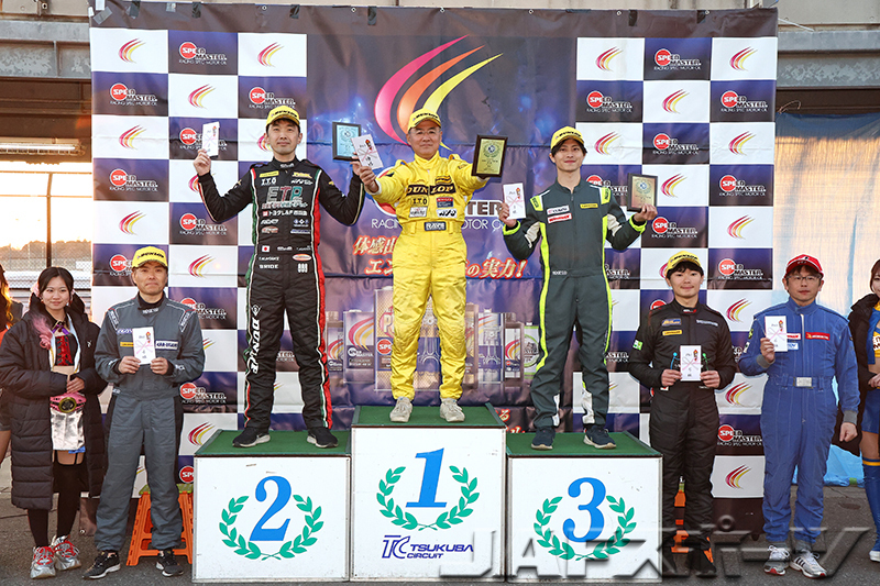「パイロンペナルティは残念ですけど、昨年の筑波では1秒近く離されていたので、セットアップ的には良い方向に向かっていると思います」という大橋選手が2位。「今シーズンから装着するタイヤのメーカーを変えたんですが、表彰台を獲得することができ、良い結果を得られたと思います」という飯野弘之選手(アルピーヌ・A110R)が3位に入賞した。