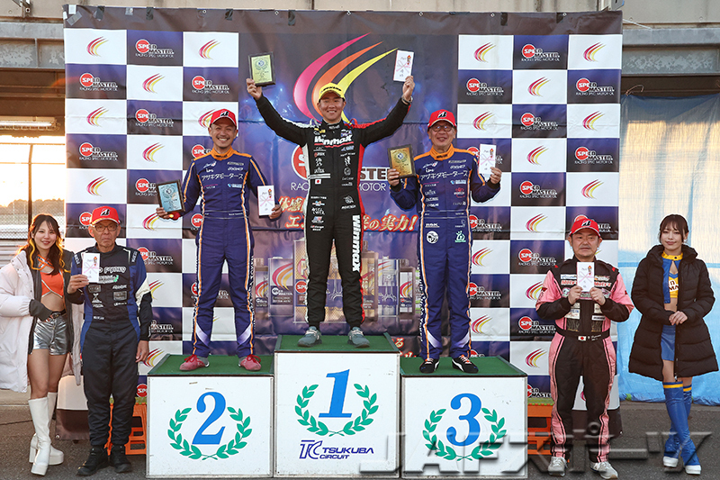 「クルマのコントロール性が良く、アクセルに対してクルマがリニアに動くので、クルマとタイヤの一番おいしいところを使えました。昨年の開幕戦も勝ったんですけど、今年の開幕戦の方が気持ち良く勝てました」という野島選手が、昨年に続き開幕戦2連覇を果たした。