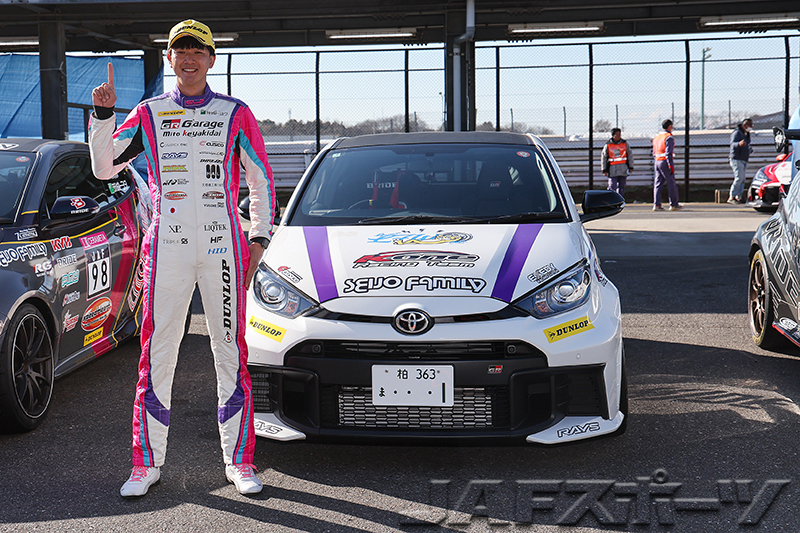 今シーズンから第2世代のトヨタ・GRヤリスに乗り換えた第1ヒート3番手の若林隼人選手が、第2ヒートで1分11秒台に引き上げるベストタイムを叩き出してトップに浮上。だが、第1ヒートは1分12秒台のタイムをマークするものの、パイロンペナルティで下位に沈んでいた奥井選手がベストタイムを0.093秒更新してくる。
