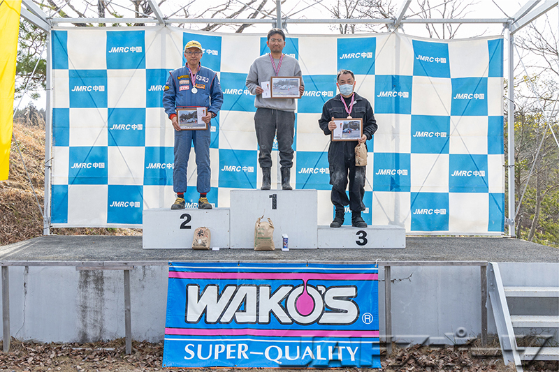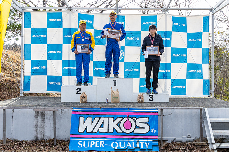 そして第2ヒート。他クラス同様にタイムアップが繰り広げられるかと思われたが、第1ヒートで3番手につけていた江崎和則選手は、その第1ヒートと全くの同タイム。逆転を狙いたい井上選手はリタイアに終わってしまい、第1ヒートでトップの岡島選手は第2ヒートでタイムダウン。そして岸山選手は第1ヒートリタイアのままスタートすることができず、岡島選手が第1ヒートのタイムで逃げ切った。