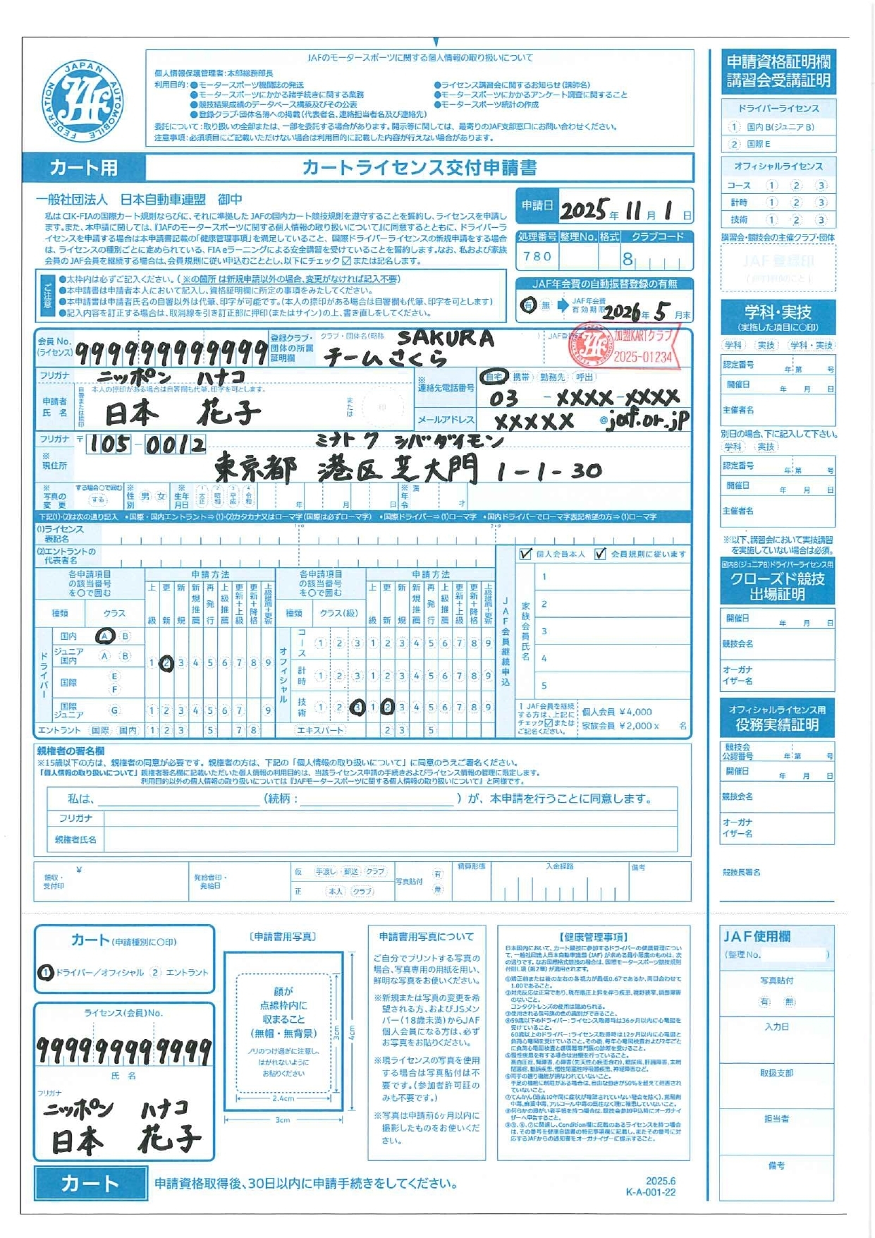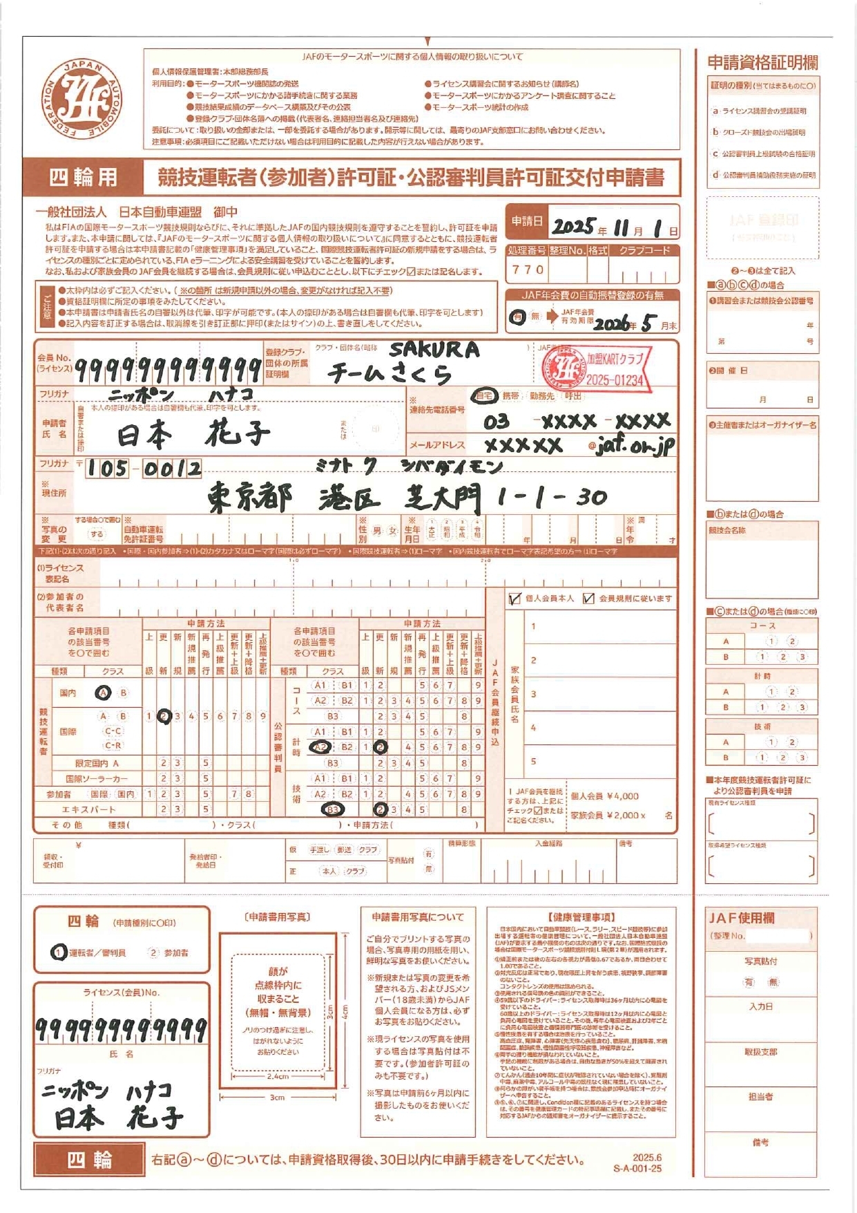 ドライバーライセンスとオフィシャルライセンスの両方を申請する場合でも申請書は1枚で可。